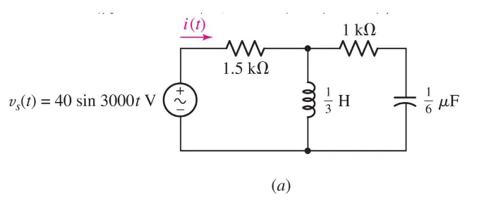 Which is exactly what we’ll see if we calcuate $I(t)$: $$ \begin{align*} I & = \dfrac{V}{Z_{eq}} \newline & = \dfrac{40\angle{- 90^\circ}}{2.5\angle{36.87^\circ}} \newline & = 16 \angle{-126.9^\circ} mA \end{align*} $$