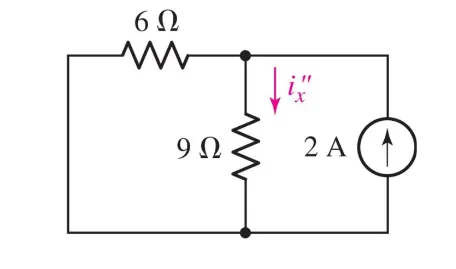 $$ i_x^{\prime \prime} = i_{total} \cdot\ \frac{R_6}{(R_6 + R_{i^{\prime \prime}_x})} \newline i_x^{\prime \prime} = 2 A \cdot\ \frac{6 \Omega}{6 \Omega + 9 \Omega} = 0.8 A $$