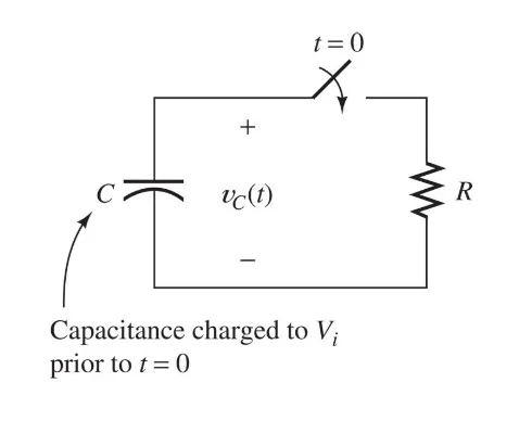 So let’s introduce our new formulas: $$ V_{C}(t) = V_{i}\ e^{\frac{-t}{\tau}} \quad \text{, where $\tau$ is:} \newline \tau = RC $$