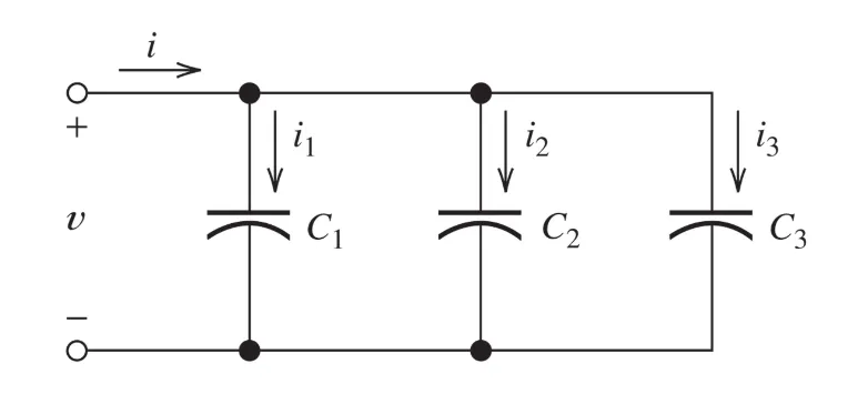 $$ i = (C_1 + C_2 + C_3) \frac{dV}{dt} $$