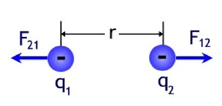 $$ \mathbf{\vec{F_{12}}} = k_{e}\ \dfrac{q_1 q_2}{r^2} \mathbf{\vec{r_{12}}} $$